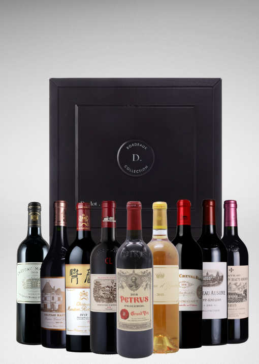 法國波爾多九大套裝包含波爾多產區9大頂級名莊,每年由全球酒業巨頭Moueix家族旗下酒商Duclot獨家發售,并配備精制外箱,堪稱稀世珍釀套裝,極具收藏價值。